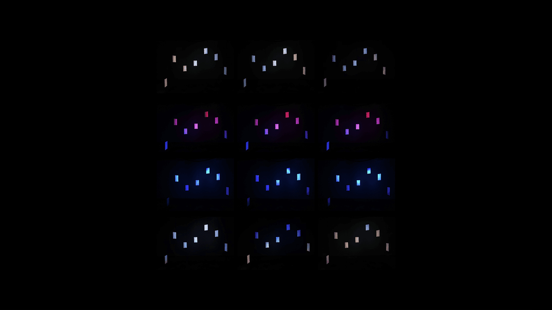 The design experiments culminated in a room-scale installation Bright Memories at Gothenburg's A Working Lab, exhibited during the summer of 2021. The focal point of the installation: an interactive centerpiece composed of 7 floating light windows, constructed by "upcycling" parts from discarded LCD monitors. A wooden console and cartridges present a tactile means to play back "memories" in the abstract light medium. Flanking the centerpiece, 10 posters open mysterious windows into the design and research process.